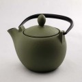南部鉄器 急須マロン若草艶消 丸みを帯びた現代的なデザインの急須です鋳物職人が一つ一つ丁寧に仕上げた鉄瓶は厳かな質感と格式高い風合いを醸し出し、品のある空間を演出してくれます。ツルは鉄瓶の熱さが一切伝わらない構造になっています。
