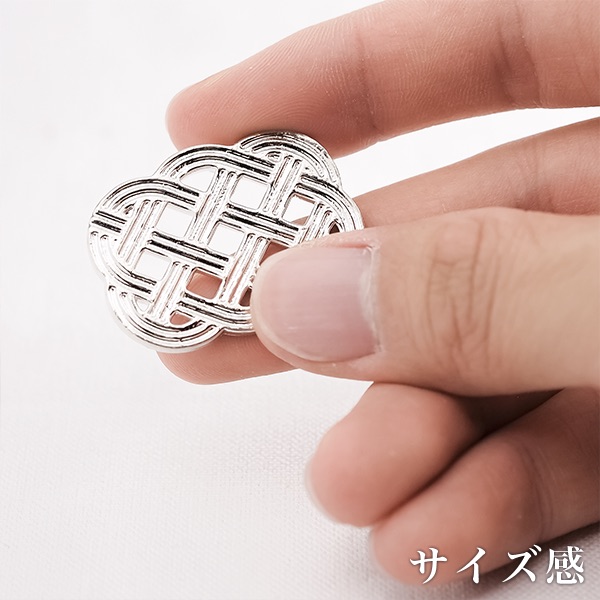 錫100%で作られた能作の箸置きです。水引の結びがモチーフでおめでたい文様になっているので特に結婚のお祝いや結婚記念日(10周年の錫婚式など)にもおすすめです。また、箸置きとしてはもちろんのこと、ピンを付けてブローチにするなどアクセサリーとしてもお使いいただけます。