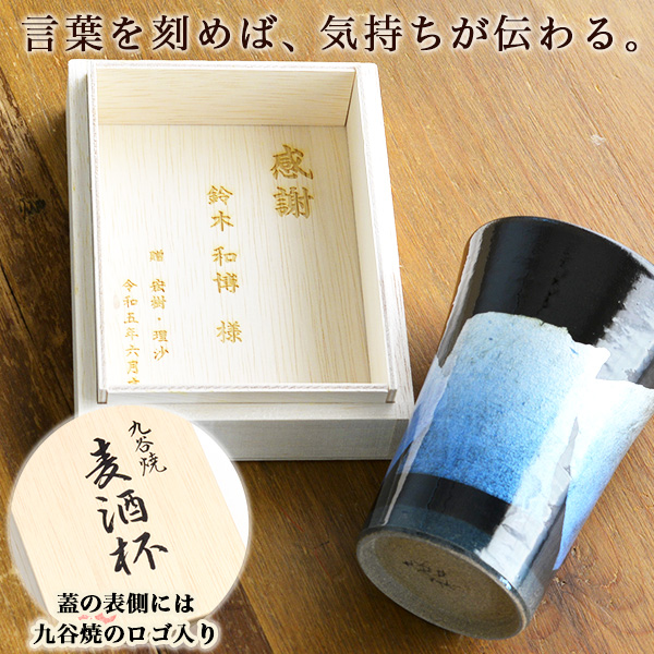 ビアカップの木箱にレーザー彫刻でメッセージを刻み、より特別な贈り物に。美味しいビールは泡と炭酸度合いにあった。家で美味しいビールが飲みたいという願望を満たしてくれる究極のビールグラス。九谷和窯で10年間、研究開発された泡多長(あわたな)粘土を使った生地がビールの美味しさを引き立てます。