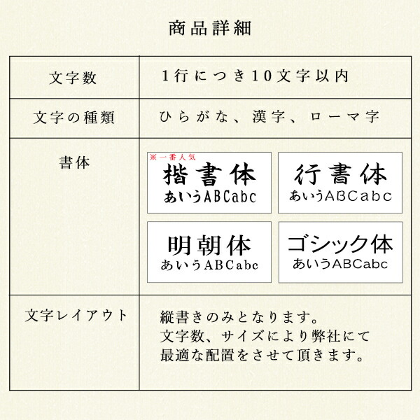 ※名入れ文字のレイアウトは店舗でバランスの良い配置をさせて頂きますのでご指定は出来兼ねます。