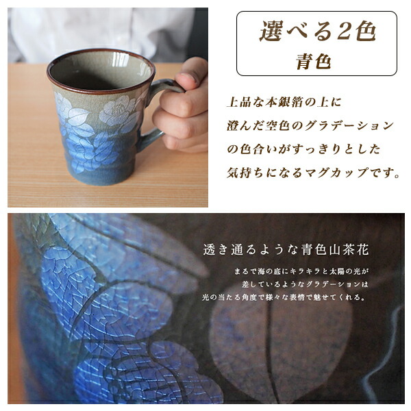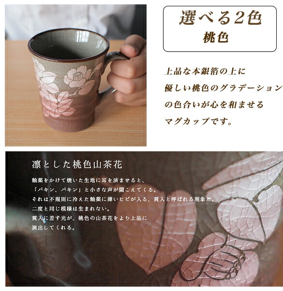 【九谷焼】 レーザー名入れ込み マグカップ 銀彩山茶花 選べる2色