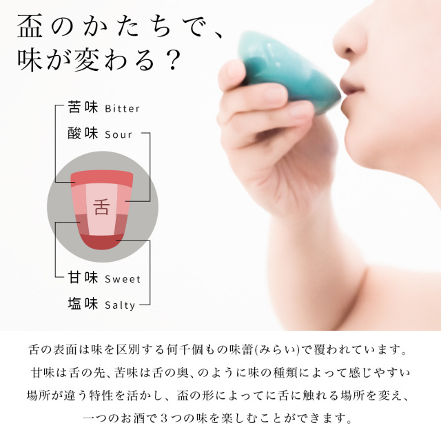 ・ 3種類の酒器の形状による味わいの違いを楽しめる