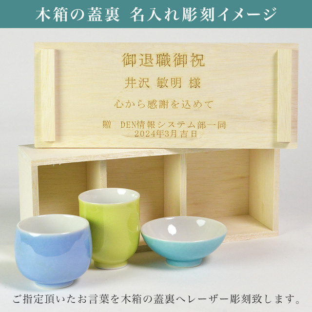 ・ 木箱入りで、蓋裏への名入れ彫刻も出来るので贈り物に最適