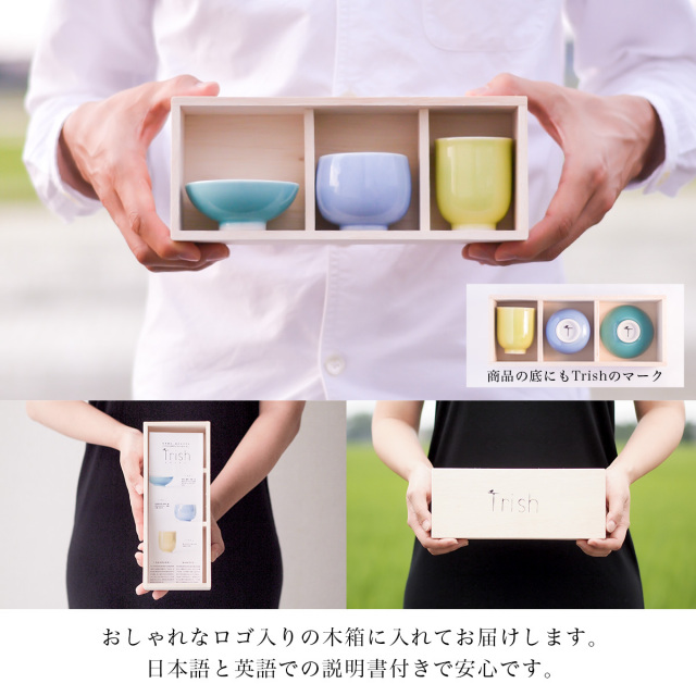 【九谷焼】 Trish ぐい呑 盃 飲み比べ 3点セット 木箱入り