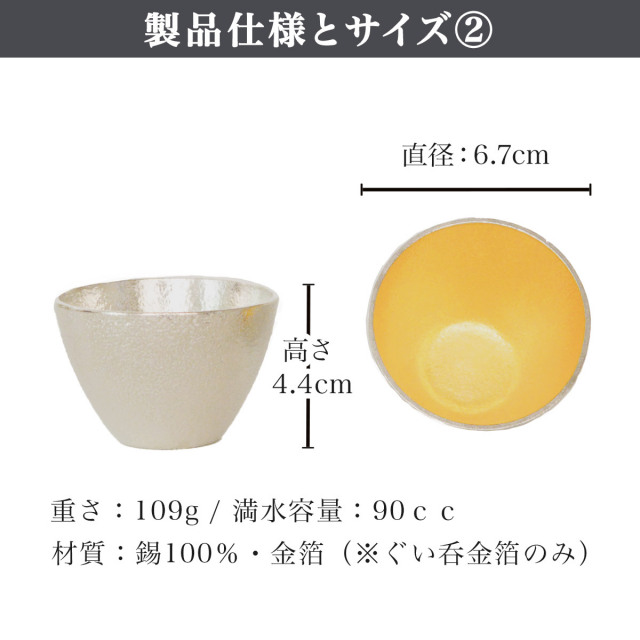 [ぐい呑(金箔)] 本体:錫100%、表面:金箔 - 寸法: