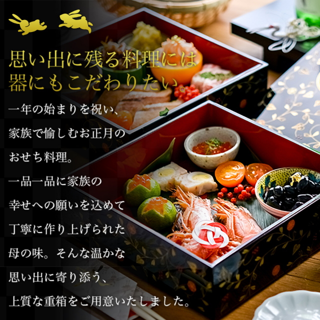 ・ 樹脂製で、木製の重箱に比べてお手入れが楽ちん