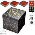 【山中漆器】 重箱 3段 うさぎ唐草 黒内朱 6.5寸 19.5cm/3〜4人用 仕切り・中子付き
