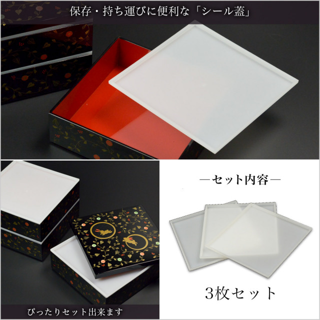 ・ 重箱3段 + 仕切り・シール蓋付きのセット