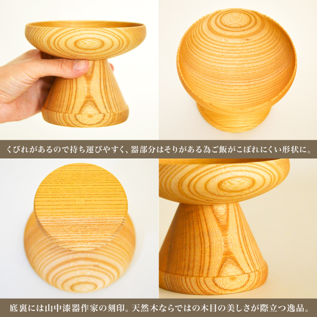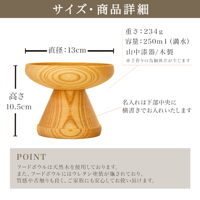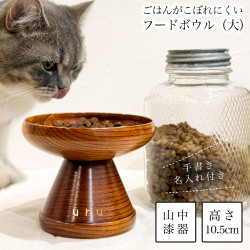 【山中漆器】 ペット用 木製フードボウル 白木塗 大 手書き名入れ付き