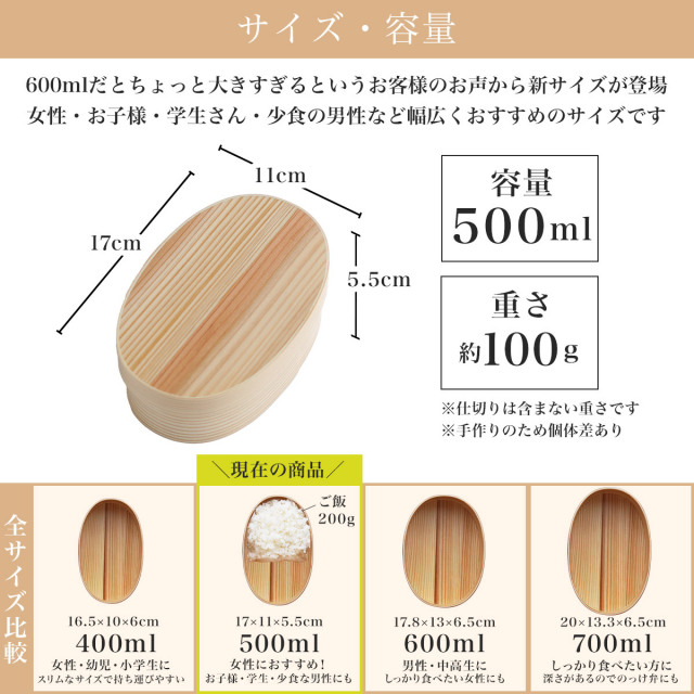 ・500mlサイズ・・・女性におすすめ。お子様、学生、少食の男性にも。