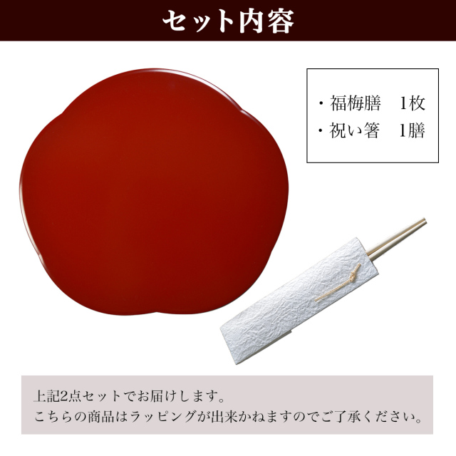 【山中漆器】 福梅膳・祝い箸 一膳セット プレースマット 朱 37.5cm