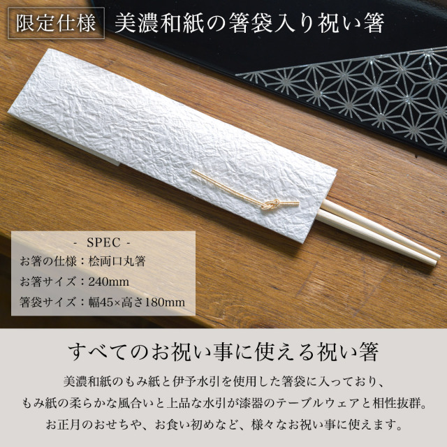 [祝箸] 美濃和紙:箸袋、ひのき:箸 - 寸法: