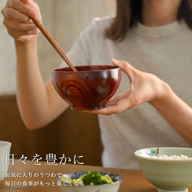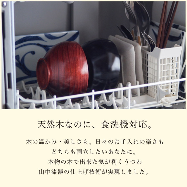 木地の選定・削り・磨き・塗りすべての工程を日本国内で行った山中漆器のうつわでありながら、食洗機で洗える使いやすさにもこだわった木製汁椀2個セットです。温もりある木目と確かな品質は、食卓に彩りを添え、汁物からデザートまで幅広く活躍します。食洗機対応で普段の手入れも簡単。結婚祝いや記念日などの贈り物にも最適です。