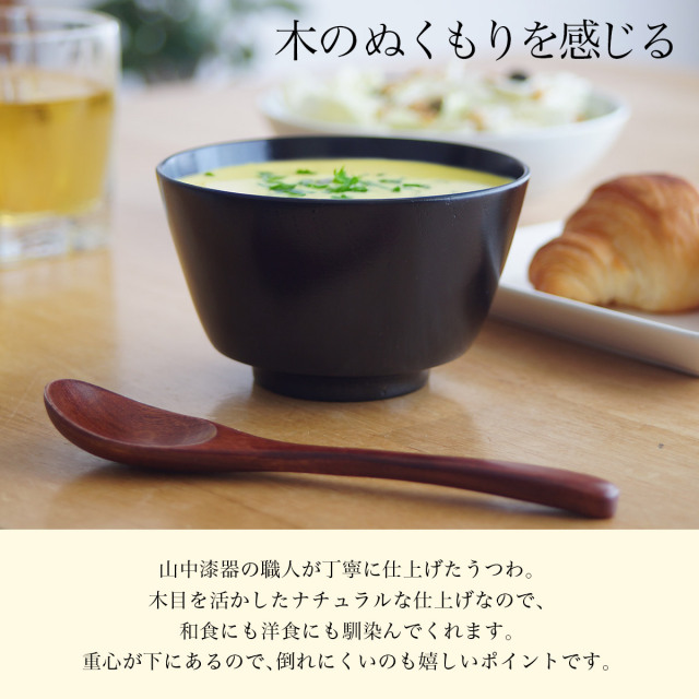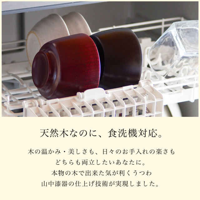 天然木と山中漆器の技が織りなす、食洗機対応の木製汁椀のペアセット。山中漆器の職人が仕上げた温もりある木目と確かな品質は、ご夫婦の食卓に彩りを添え、汁物からデザートまで幅広く活躍します。普段使いにも、お正月やハレの日にも使える上質なうつわ。手入れも簡単で、ご自宅用にも贈り物にもおすすめのアイテムです。