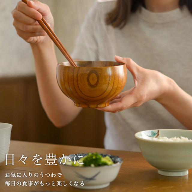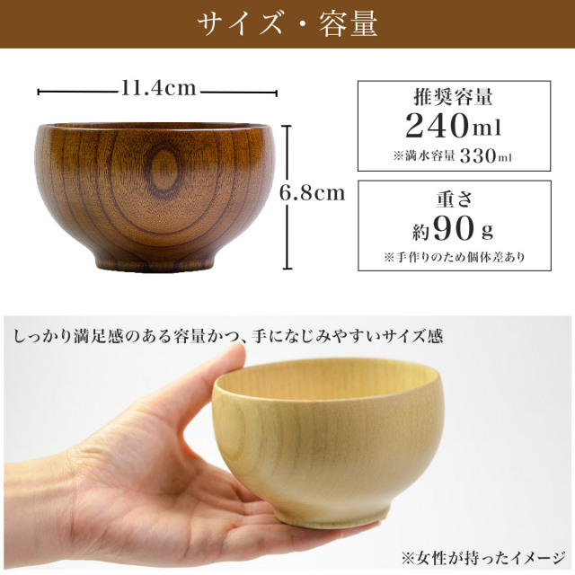 天然木と山中漆器の技が織りなす、食洗機対応の木製汁椀2色セット。拭漆(ブラウン)と木の色を活かしたナチュラル(プレーン)のセットです。温もりある木目と確かな品質は、ご夫婦の食卓に彩りを添え、汁物からデザートまで幅広く活躍します。普段使いにも、お正月やハレの日にも使える上質なうつわ。手入れも簡単で、ご自宅用にも贈り物にもおすすめです。