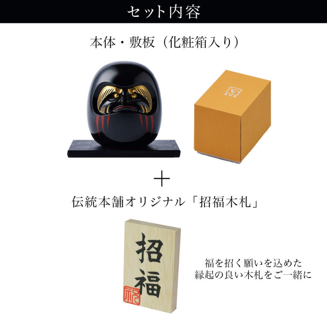 【高岡銅器】 開運厄除 達磨 黒漆・赤漆・白漆 選べる3色 オリジナル招福木札付き