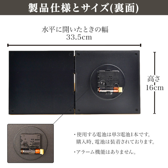 - [屏風時計] 高さ:16cm × 横:33.5cm × 奥行き:4cm