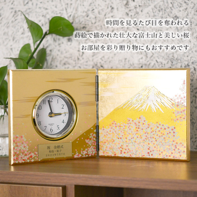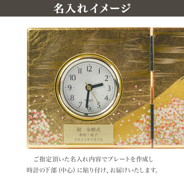 【山中漆器】 屏風時計 富士雅桜 小 名入れプレート料込み
