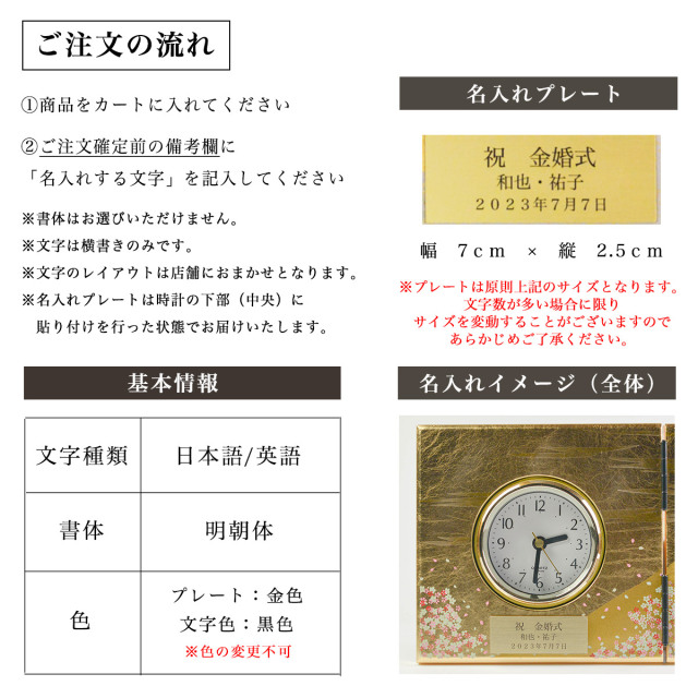 こちらは、好きな言葉をお入れできる金の名入れプレート付き商品です。