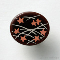 1500年の歴史を有する越前塗。小さいブローチながらに、職人の技が光る、手書き蒔絵の手法で絵付けが施されています。
