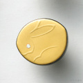 1500年の歴史を有する越前塗。小さいブローチながらに、職人の技が光る、手書き蒔絵の手法で絵付けが施されています。