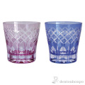 切子とは、砥石等の研磨材を用いて硝子器に彫り込まれたカット模様のことです。この技法は、江戸時代の後期より現代に伝えられてきた伝統工芸のひとつです。この硝子器は、江戸硝子吹き技法の色被せ硝子に、切子師の技が光り輝く手造りならではの工芸品です。