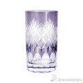 切子とは、砥石等の研磨材を用いて硝子器に彫り込まれたカット模様のことです。この技法は、江戸時代の後期より現代に伝えられてきた伝統工芸のひとつです。この硝子器は、江戸硝子吹き技法の色被せ硝子に、切子師の技が光り輝く手造りならではの工芸品です。