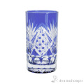 切子とは、砥石等の研磨材を用いて硝子器に彫り込まれたカット模様のことです。この技法は、江戸時代の後期より現代に伝えられてきた伝統工芸のひとつです。この硝子器は、江戸硝子吹き技法の色被せ硝子に、切子師の技が光り輝く手造りならではの工芸品です。