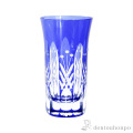 切子とは、砥石等の研磨材を用いて硝子器に彫り込まれたカット模様のことです。この技法は、江戸時代の後期より現代に伝えられてきた伝統工芸のひとつです。この硝子器は、江戸硝子吹き技法の色被せ硝子に、切子師の技が光り輝く手造りならではの工芸品です。