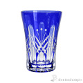 切子とは、砥石等の研磨材を用いて硝子器に彫り込まれたカット模様のことです。この技法は、江戸時代の後期より現代に伝えられてきた伝統工芸のひとつです。この硝子器は、江戸硝子吹き技法の色被せ硝子に、切子師の技が光り輝く手造りならではの工芸品です。