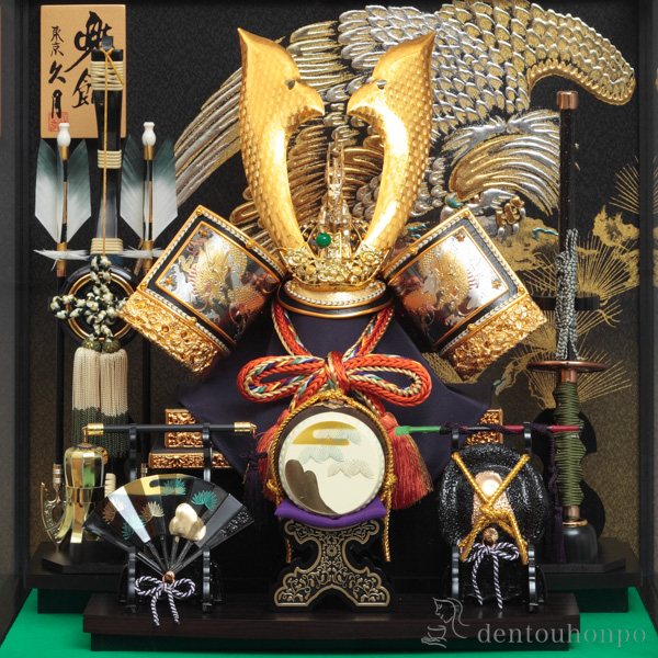 【江戸節句人形 久月】 五月人形 兜飾り 取付ケース入り ガラスケース