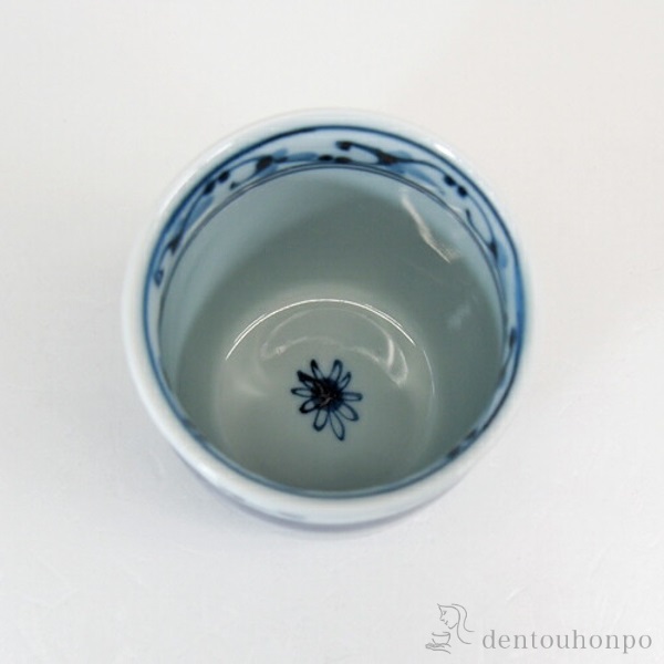 【波佐見焼】 湯呑 菊地紋 青 大 5個セット