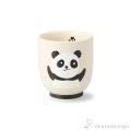 手書きのパンダが可愛らしい、陶器の湯呑。赤と黒の2色展開。お揃いのお茶碗もございます。