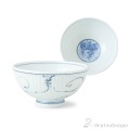 【波佐見焼】 軽量飯碗 唐草ぶどう 青 大 5個セット