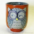 【波佐見焼】 湯呑 手描ふくろう 赤 小 3個セット