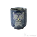 【波佐見焼】 湯呑 手描ふくろう 青 大 3個セット