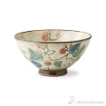 筆の跡のかすれ具合や、絵の具の濃淡に手仕事のぬくもりを感じさせるお茶碗です。つるんとした手触りで、陶器なのに重苦しさを感じさせません。こちらの商品の斑点のような模様は個体差がありますが、商品不良ではごさいません。手作りの風合いをお楽しみいただける方向けの商品です。