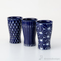 深海のような奥行きのある藍色が綺麗な「琉璃」。琉璃と白イッチンで一筆一筆手描きされた贅沢な品です。江戸切子にも似た伝統的な日本の意匠の姿を感じさせます。