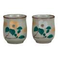 上質な九谷焼の夫婦湯呑は、山茶花の優美なデザインが心を和ませます。手に馴染む滑らかな触感とともに、お茶の時間を格別なものに。大切な人とのひとときを、深い日本の伝統で彩ります。それぞれ異なる風合いを持ち、使うたびに新たな魅力を感じさせる、特別なペアです。