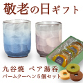 【敬老の日数量限定】九谷焼の産地である石川県の人気のお菓子屋さん「橘香堂」の手作りバームクーヘンと、共に年を重ねる二人の幸せを願い作られた夫婦湯呑、重なる刷毛目がまるで羽毛のように見え、ほっこりと温かい気持ちにさせてくれる夫婦湯呑の限定セットです。バームクーヘンは約3週間お日持ちするようお届けさせて頂きます。※数量限定商品は9/20〜9/21にお届けできますよう手配させて頂きます。※商品手配の為、9/20 10時までにご注文お願いいたします。※限定個数に達し次第販売を終了させて頂きます。