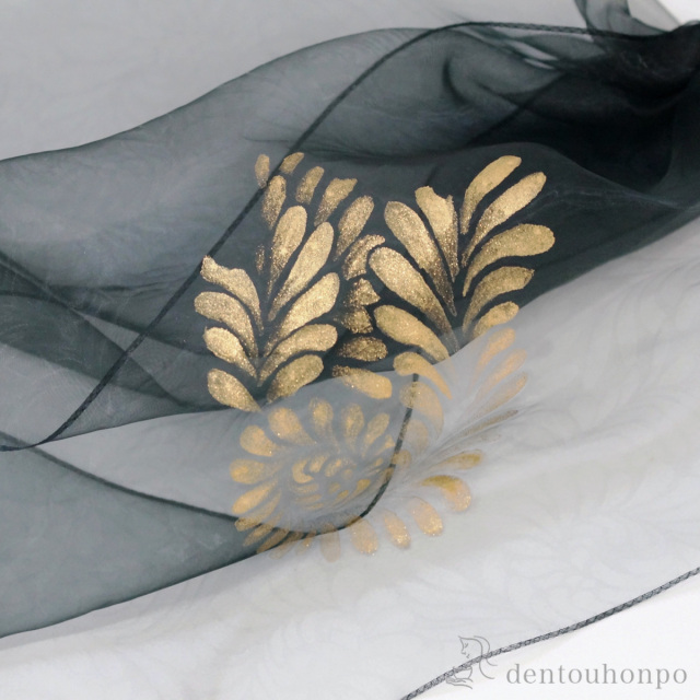 【加賀友禅】 天女の羽衣 加賀友禅染ショール 手描き シェル(黒) 小
