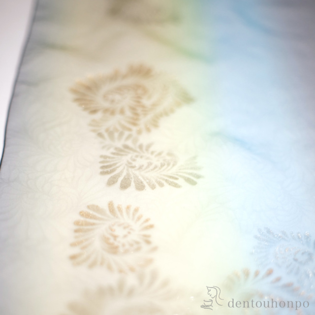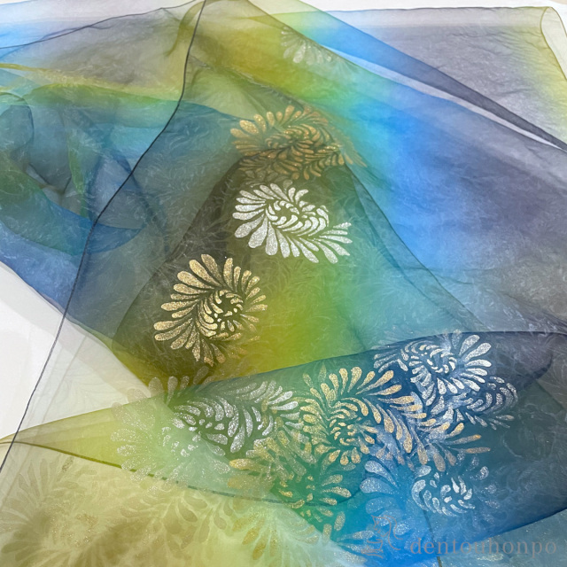 【加賀友禅】 天女の羽衣 加賀友禅染ショール 手描き シェル(青オーロラ) 大