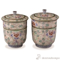 【清水焼(京焼)】蓋付組湯呑 ヒワ花雲 ペア