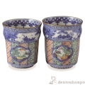 【清水焼(京焼)】組湯呑 色絵木瓜山水 ペア
