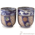 染付と色絵が良く調和した湯呑です。クラッシックな図様があたたかみを感じさせてくれます。