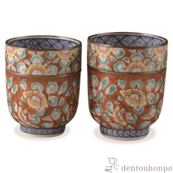 【清水焼(京焼)】組湯呑 赤濃牡丹唐草 ペア