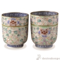 【清水焼(京焼)】組湯呑 ヒワ花雲 ペア
