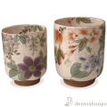 陶あん窯独特の彩色で四季の草花が描かれた、季節を問わず使える組湯呑です。一つ一つの草花を眺めるのも楽しみです。
