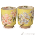 【清水焼(京焼)】組湯呑 黄塗桜 ペア