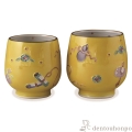【清水焼(京焼)】組湯呑 黄交趾宝尽し ペア